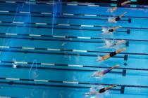 A Las Vegas swimming instructor faces assault and malicious destruction of private property citations after police say he yelled and threw a flask at students.
