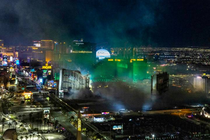 In 22 seconds the Rat Pack-era Tropicana’s two hotel towers were reduced to rubble, in part, to make way for the Athletics’ planned Las Vegas ballpark.