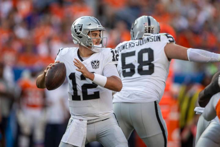 The Raiders appear set to add help from outside their building after quarterback Aidan O’Connell suffered a thumb injury Sunday.