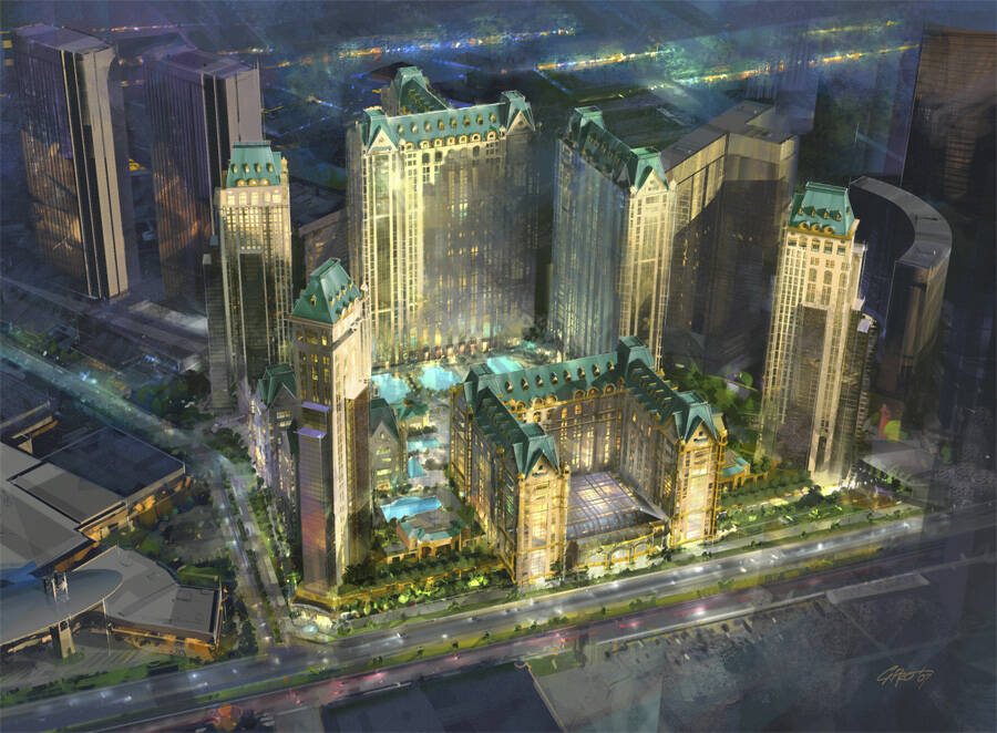 The buyers set out to develop a multibillion-dollar Plaza-branded project. Plans called for 4,100 hotel rooms, 2,600 resort-condo units and more than 1 million square feet of convention, retail, restaurant and casino space combined, Clark County records show.